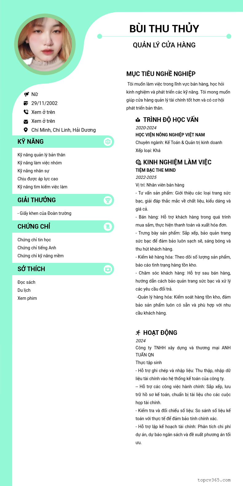 CHI TIẾT ỨNG VIÊN