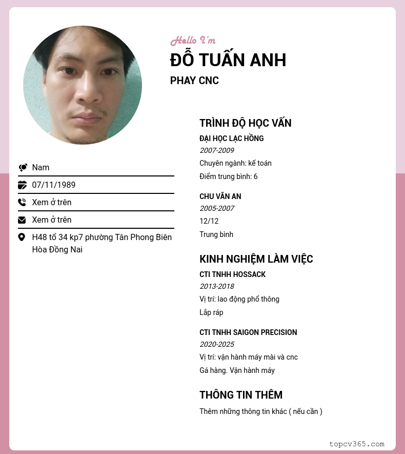H48 tổ 34 kp7 phường Tân Phong Biên Hòa Đồng Nai