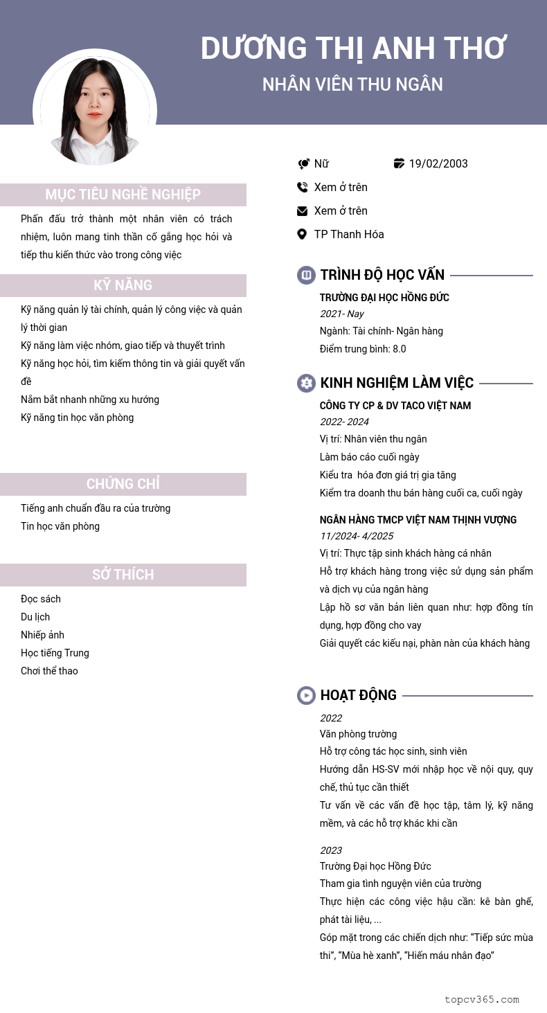 CHI TIẾT ỨNG VIÊN