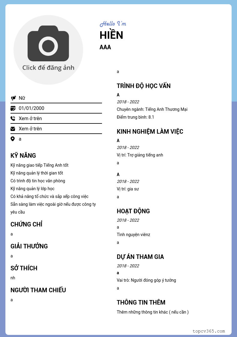 CHI TIẾT ỨNG VIÊN