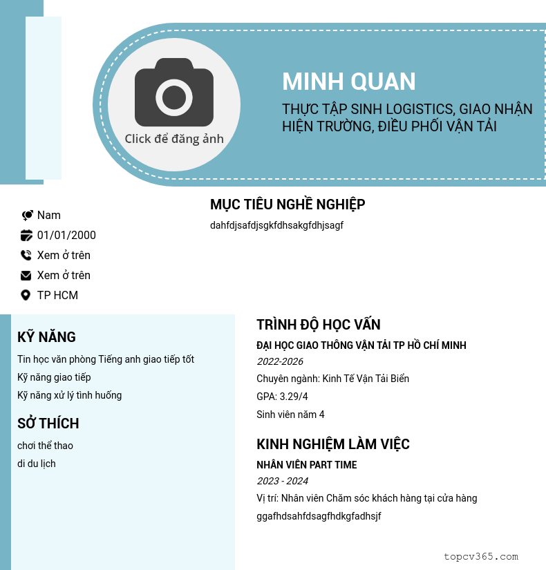 thực tập sinh logistics, giao nhận hiện trường, điều phối vận tải