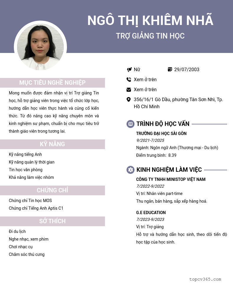 CHI TIẾT ỨNG VIÊN