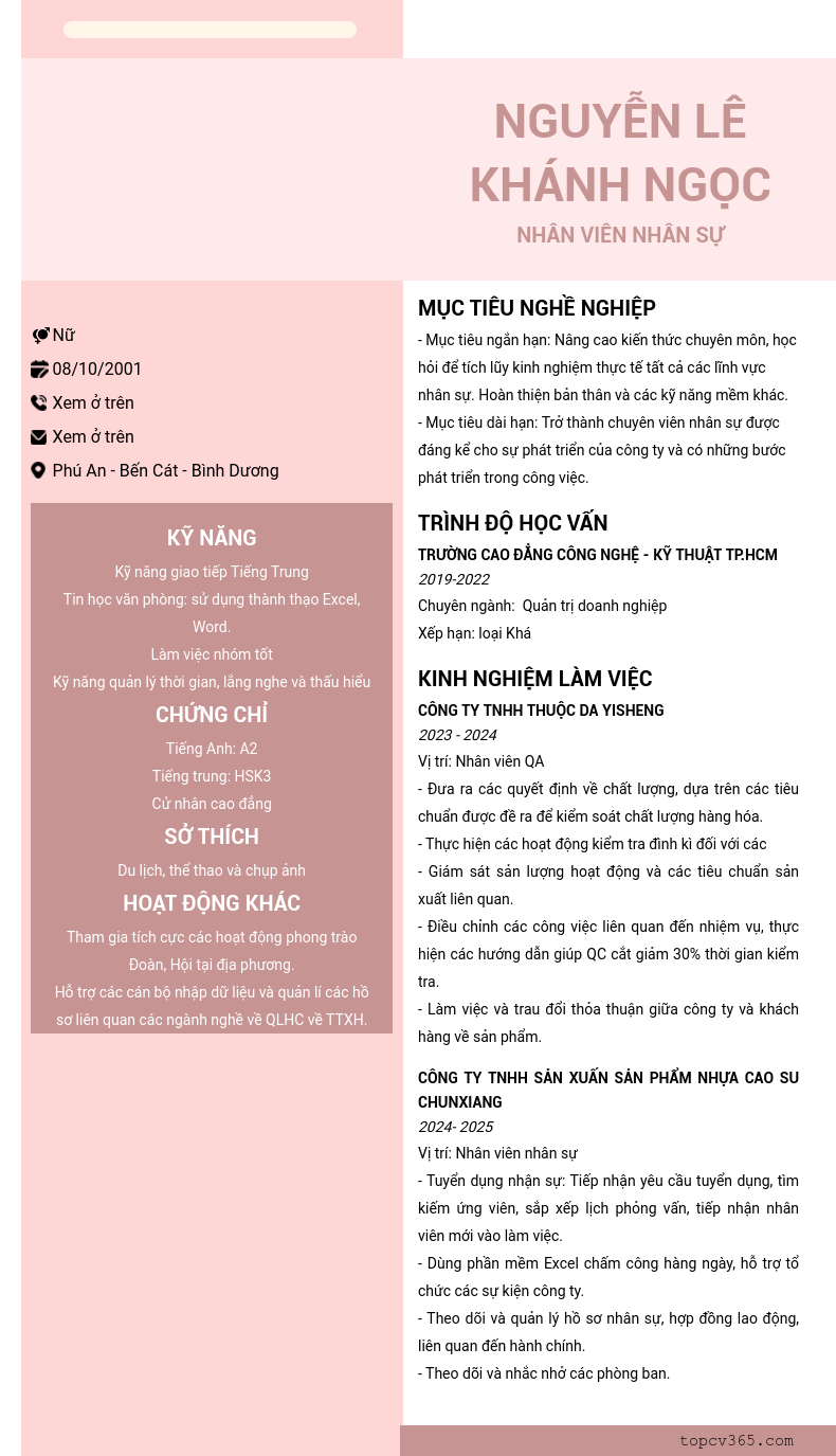 CHI TIẾT ỨNG VIÊN