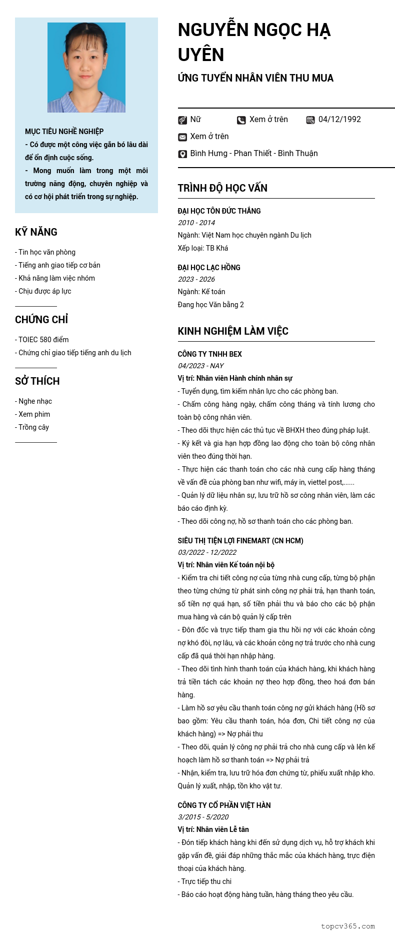 CHI TIẾT ỨNG VIÊN