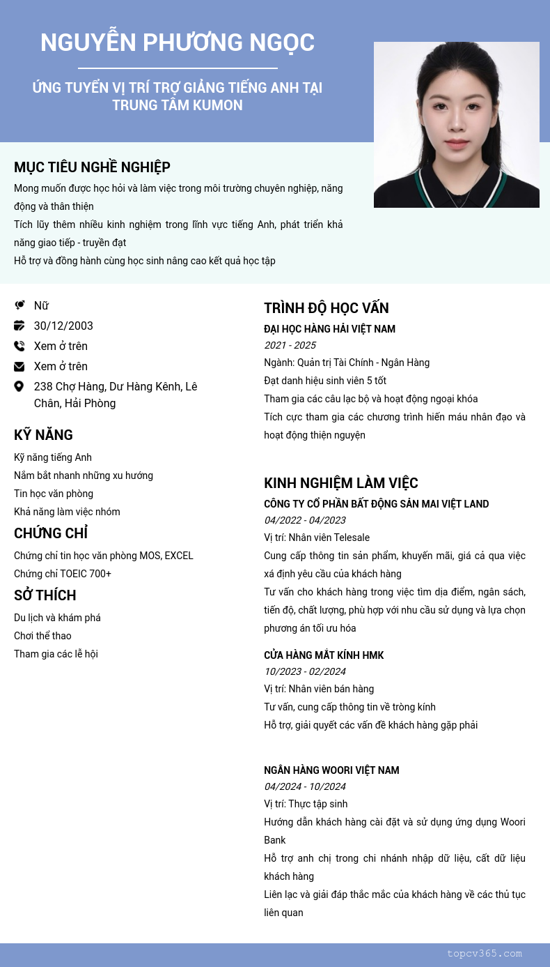 ứng tuyển vị trí Trợ giảng tiếng anh tại trung tâm kumon