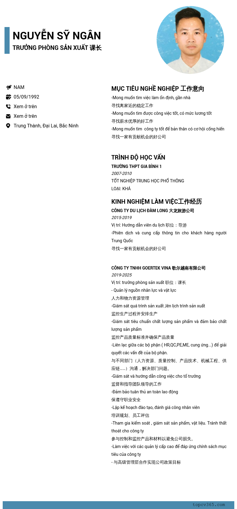 TRƯỞNG PHÒNG SẢN XUẤT 课长