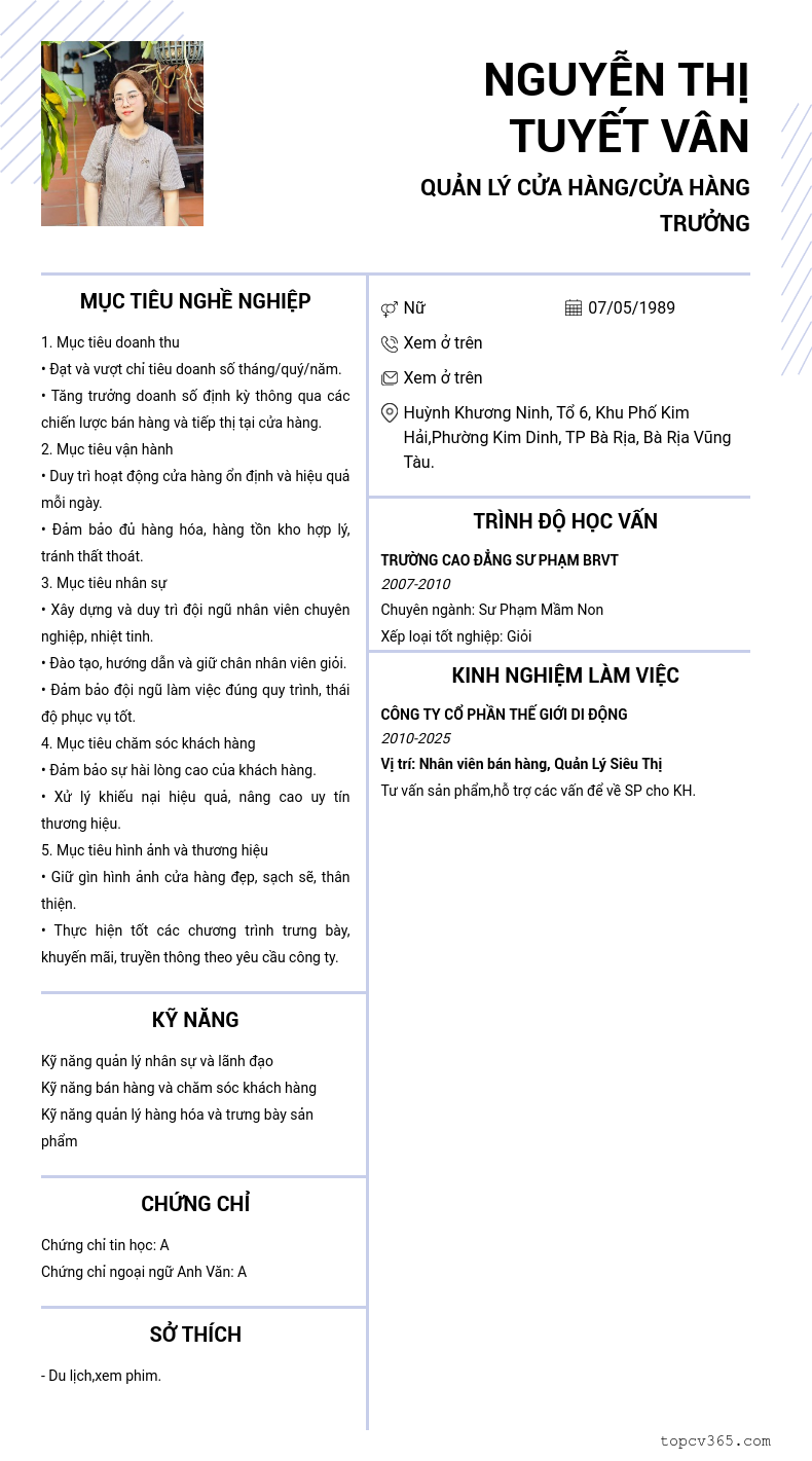 QUẢN LÝ CỬA HÀNG/CỬA HÀNG TRƯỞNG