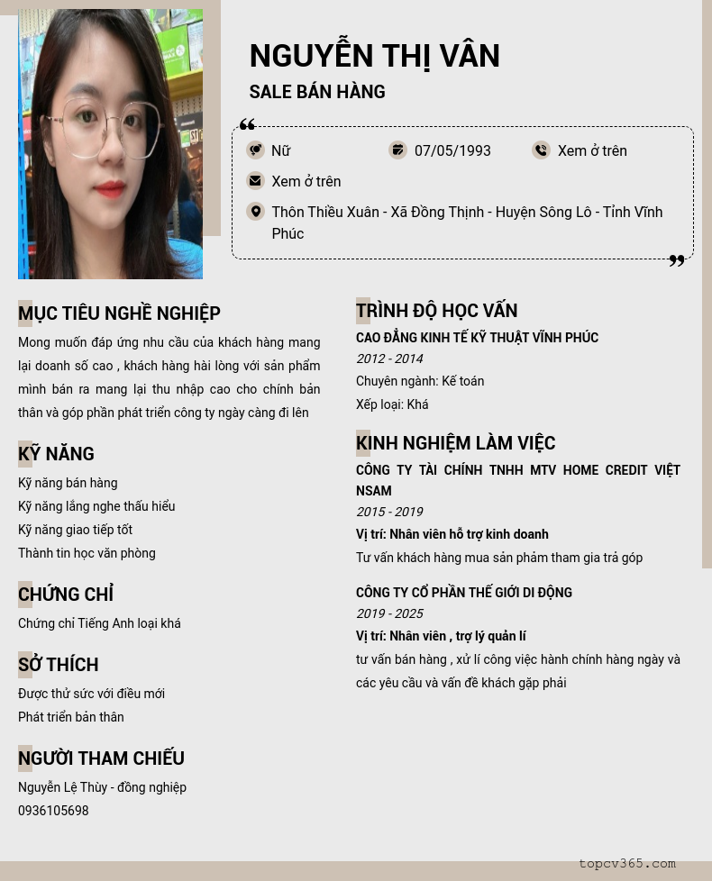 CHI TIẾT ỨNG VIÊN