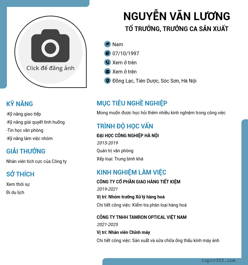 Tổ trưởng, trưởng ca sản xuất