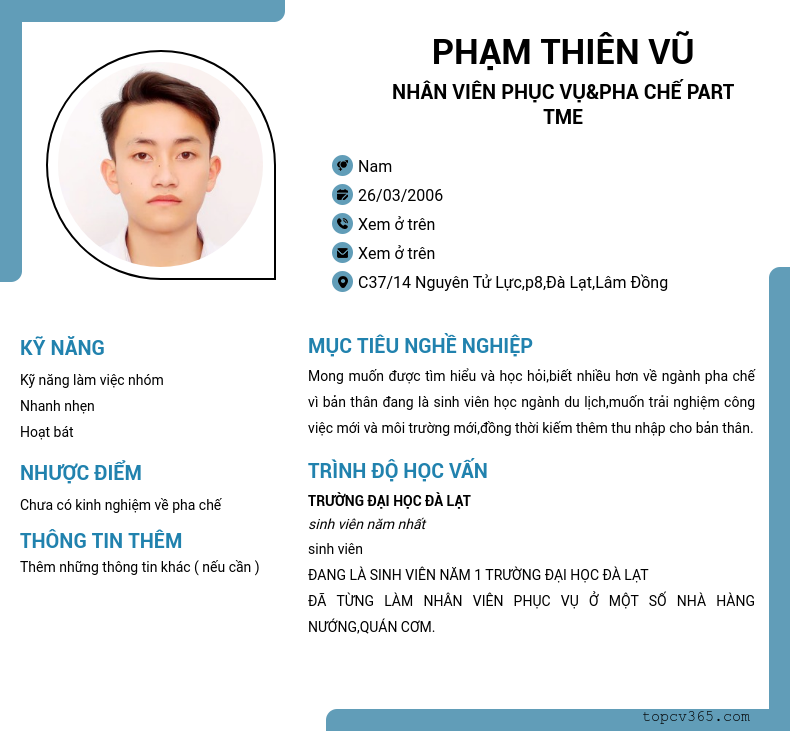 NHÂN VIÊN PHỤC VỤ&PHA CHẾ PART TME