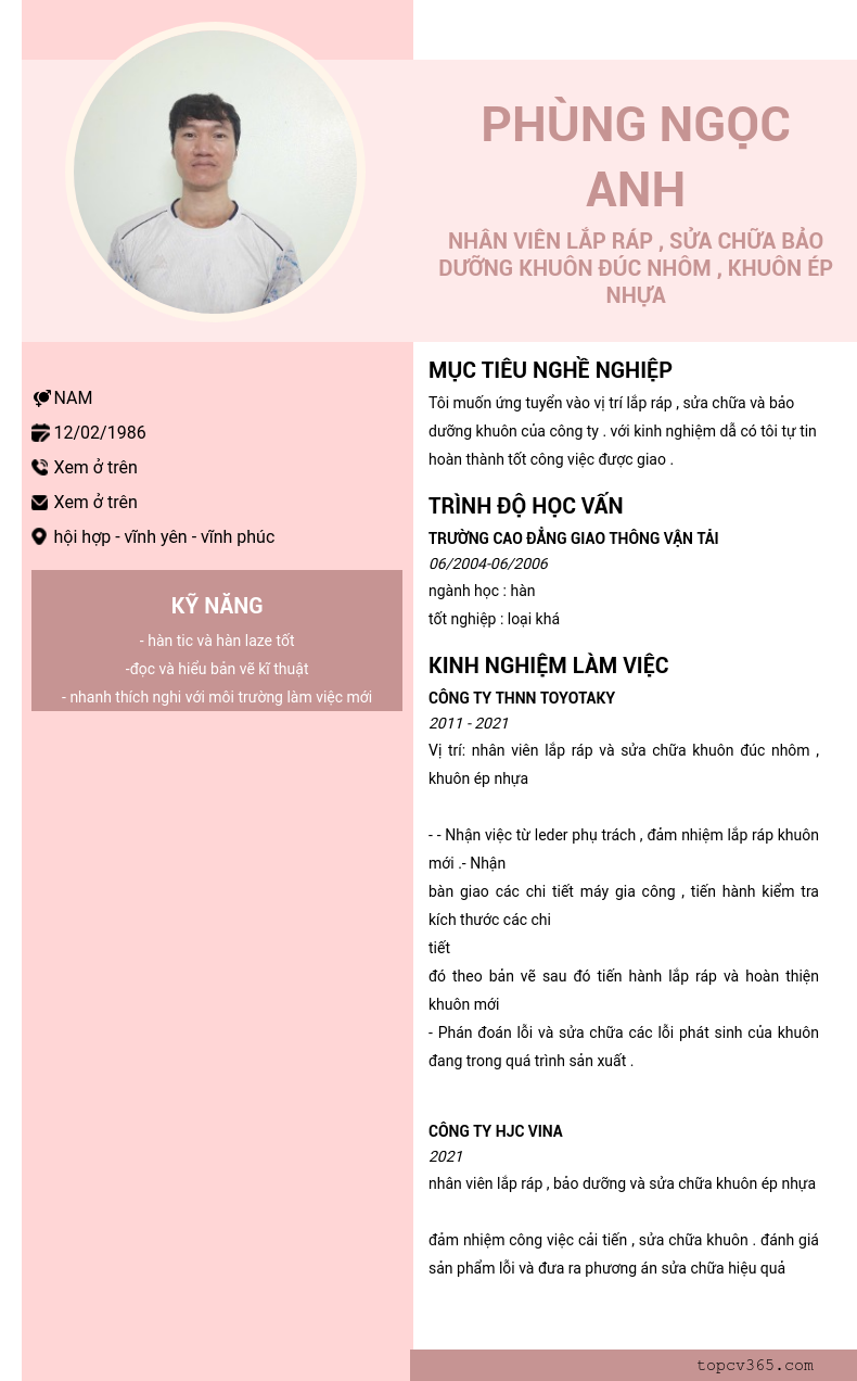 nhân viên lắp ráp , sửa chữa bảo dưỡng khuôn đúc nhôm , khuôn ép nhựa