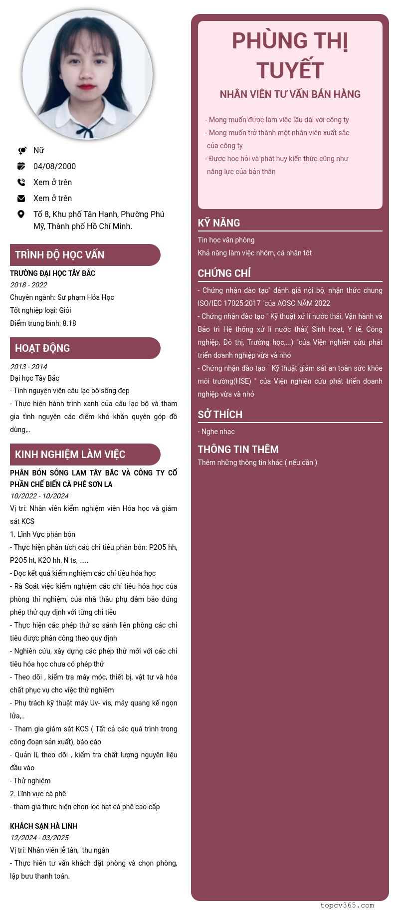 CHI TIẾT ỨNG VIÊN