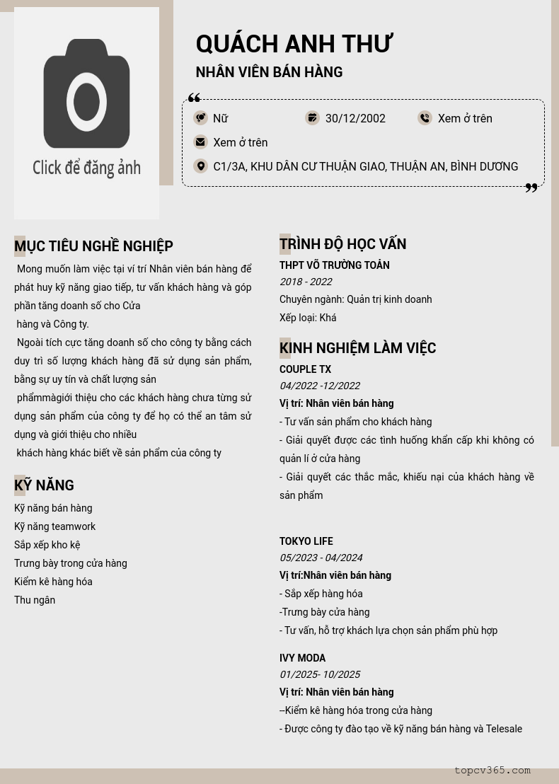 CHI TIẾT ỨNG VIÊN