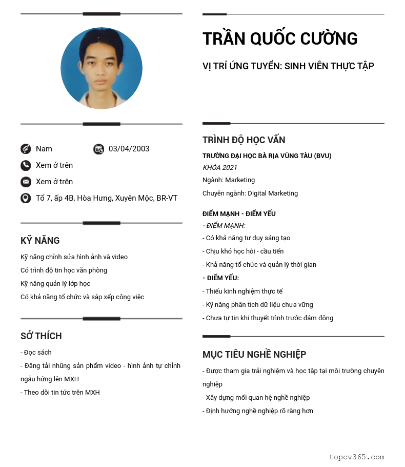 VỊ TRÍ ỨNG TUYỂN: SINH VIÊN THỰC TẬP