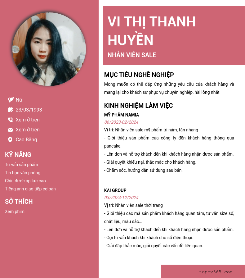 CHI TIẾT ỨNG VIÊN